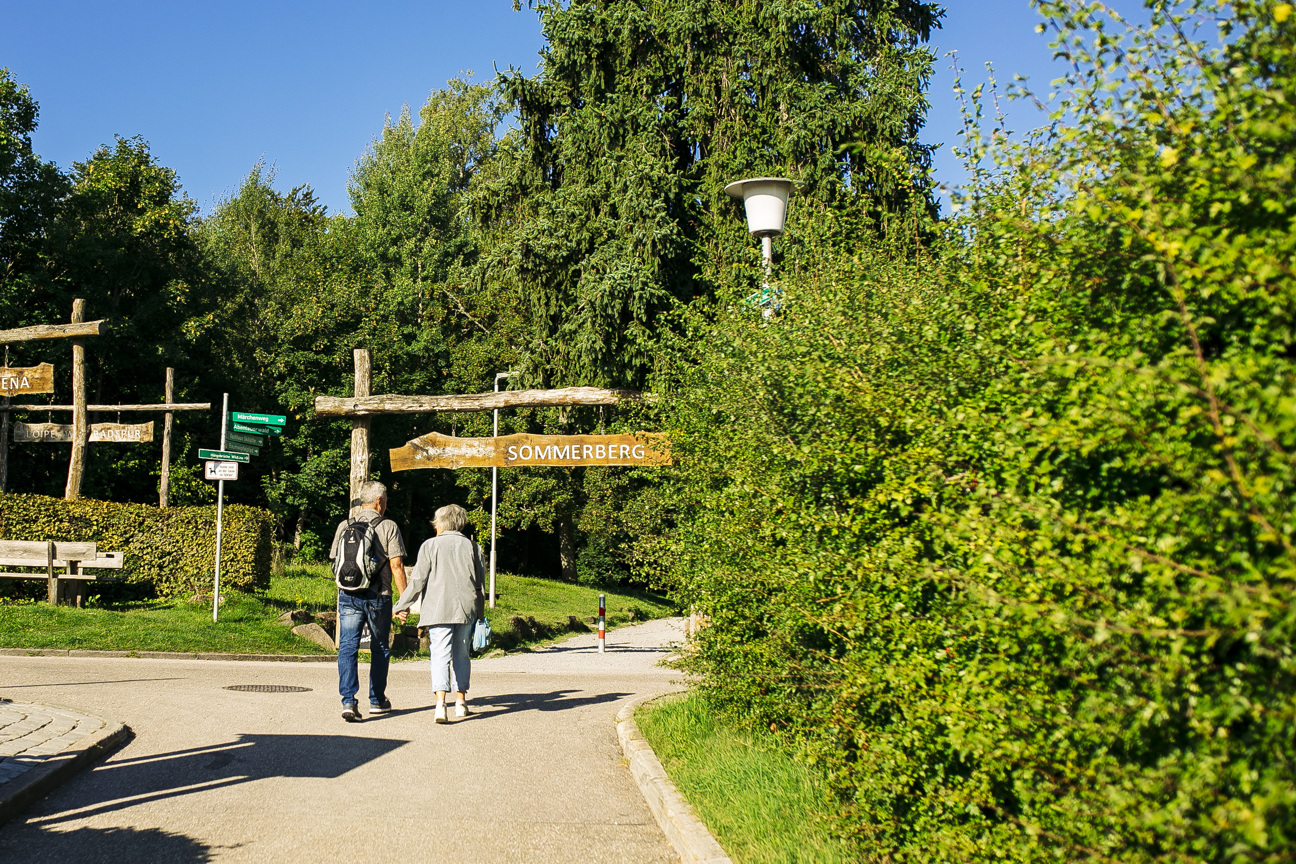 Wer die schmucke Kurstadt mit einer erlebnisreichen Wanderung verbinden will, wandert hinauf auf den Sommerberg (alternativ kann auch die Sommerbergbahn genutzt werden). Dort gibt es einen Baumwipfelpfad mit Aussichtsturm und eine 380m lange Hängeseilbrücke. Auch ohne diese Highlights belohnt uns die Wanderung, die durch die Wälder zur